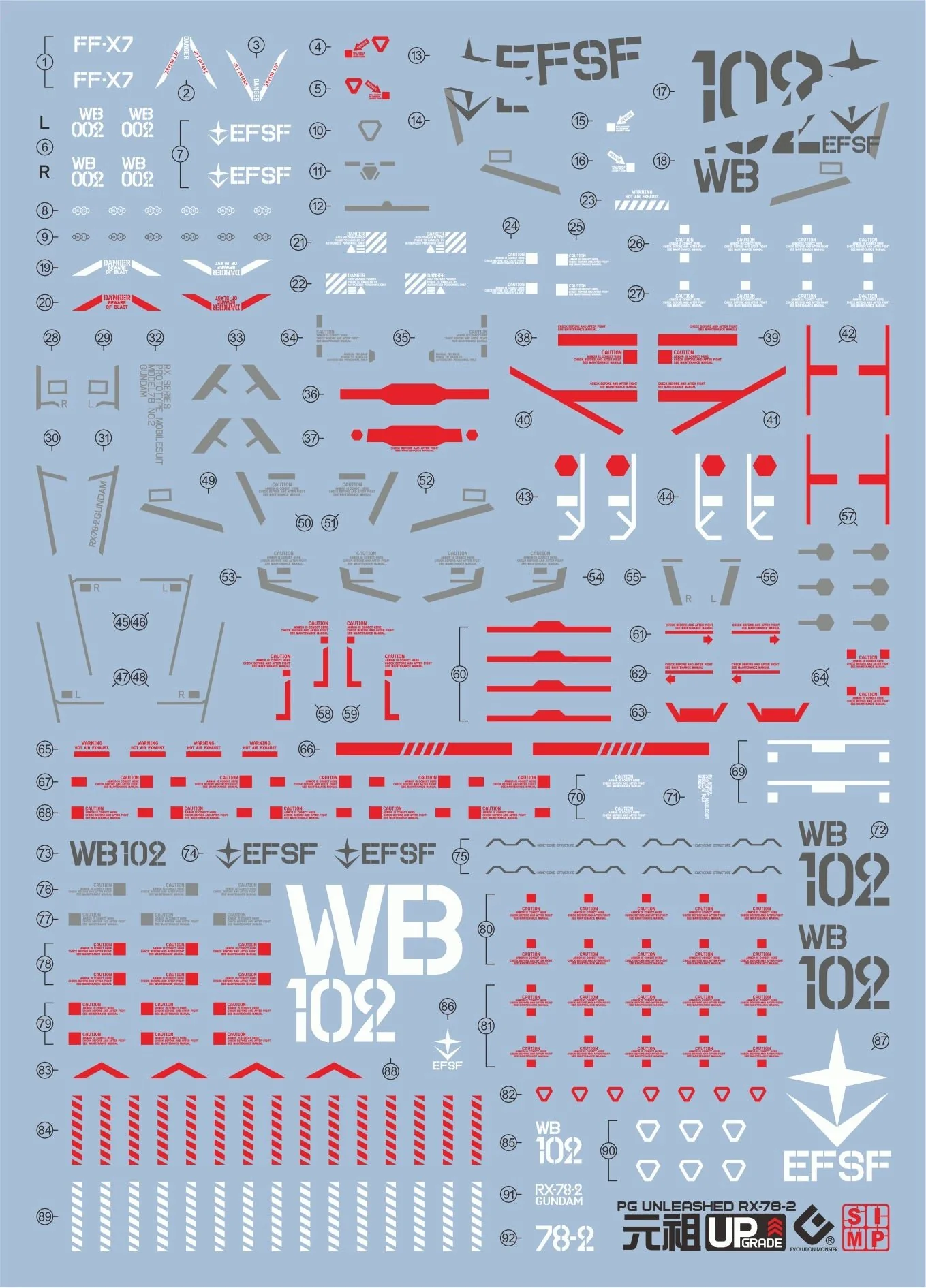 - Upgrade your Gundam model accessories with this official PGU RX-78-2 decal set.